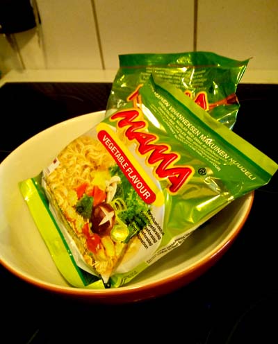 Kuivamuona. Kaapissa on aina kuivamuonaa. Hernesoppa, kuivapussiruuat, mikä tahansa missä lukee ”lisää vain vesi”. Meillä lasten ehdoton ykkönen on pussinuudelit. Lapset riemastuvat nuudelipäivistä ja äiti loistaa kokkina lisäämällä kiehuvan veden.